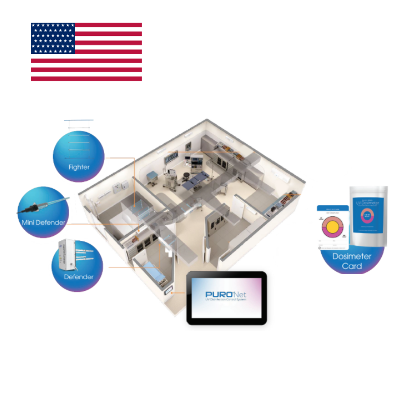 - PuroNet: giám sát toàn bộ hoạt động, cảnh báo khi có người vào vùng chiếu, lưu lại chu kỳ khử khuẩn và thông số vận hành.