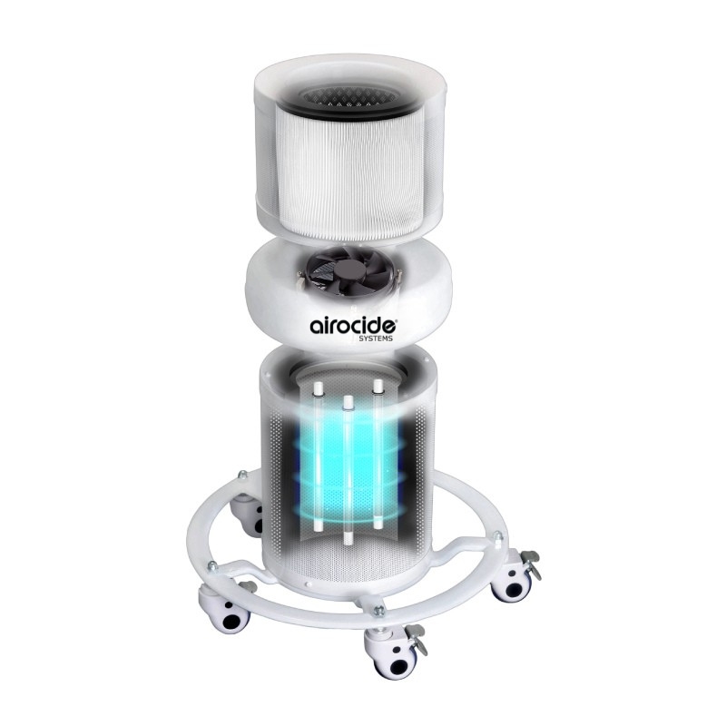 Thiết kế thông minh của Airocide Mobile giúp tăng hiệu suất và tuổi thọ của tất cả các chi tiết máy. Không những vậy, hiệu quả lọc cũng được nâng cao. Cách thiết kế và bố trí bộ lọc than hoạt tính kết hợp với đèn UV-C giúp “bẫy” các tác nhân gây hại, giữ chúng trong khoảng cách gần nguồn phát UV-C để tiêu diệt, dù dòng khí vẫn liên tục di chuyển qua máy ở tốc độ cao.